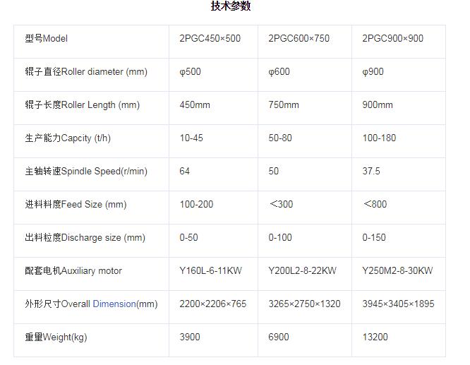 雙齒輥破碎機技術(shù)參數(shù):